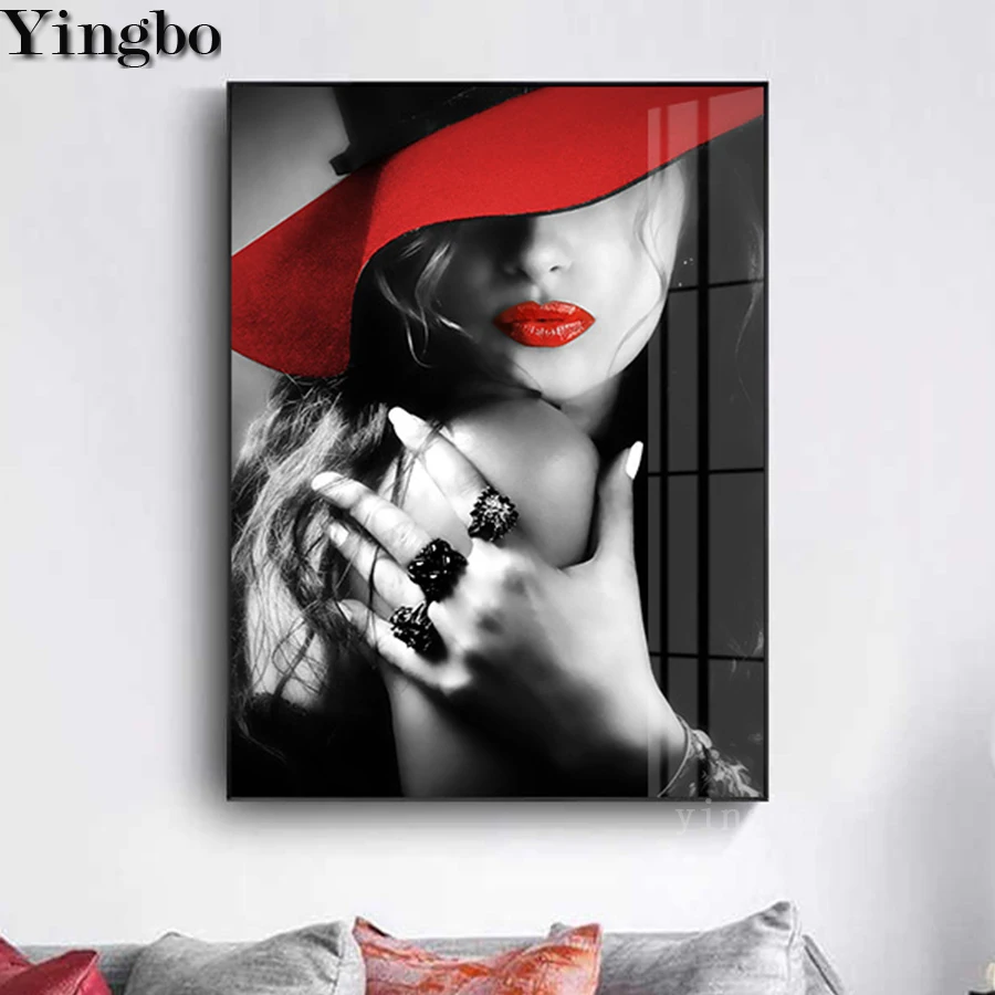 Набор для алмазной живописи 5D сделай сам, женская сексуальная картина с красными губами, полностью квадратная круглая Алмазная мозаика, вышивка крестом, стразы, украшение