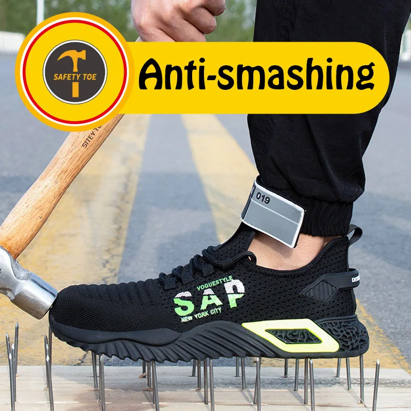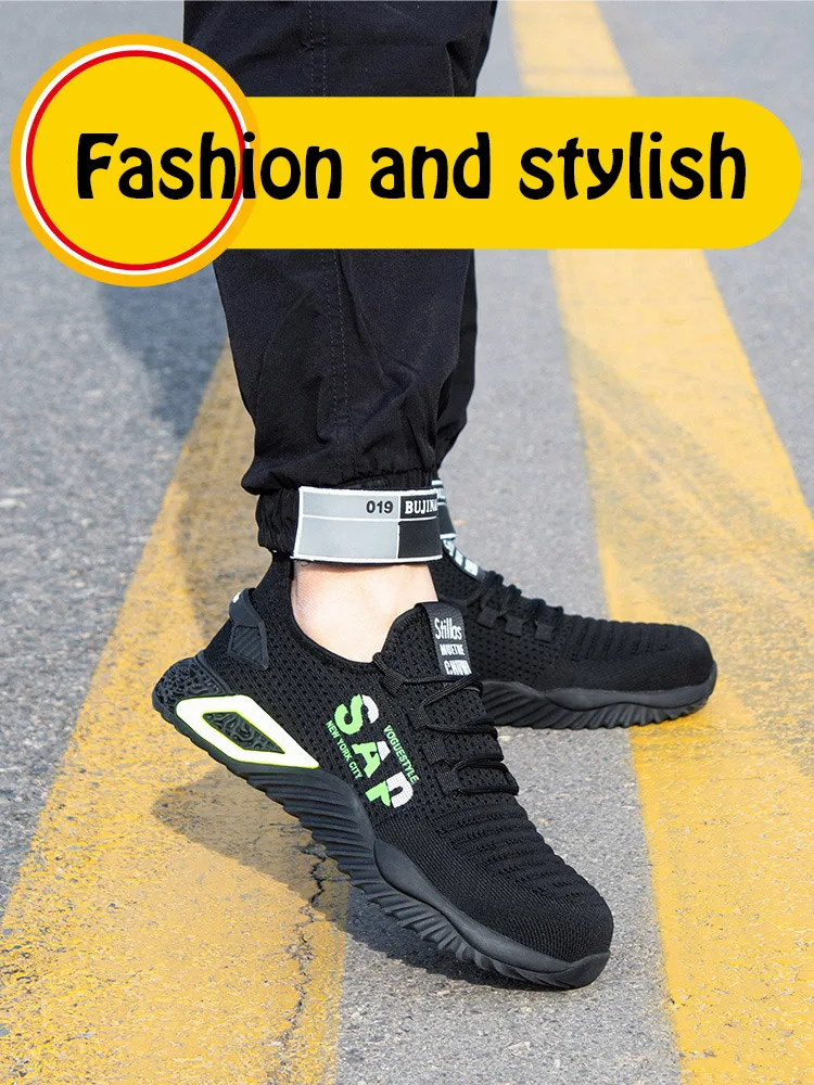 Стильная летняя дышащая мужская защитная обувь, ботинки со стальным носком, Повседневная промышленная Рабочая обувь
