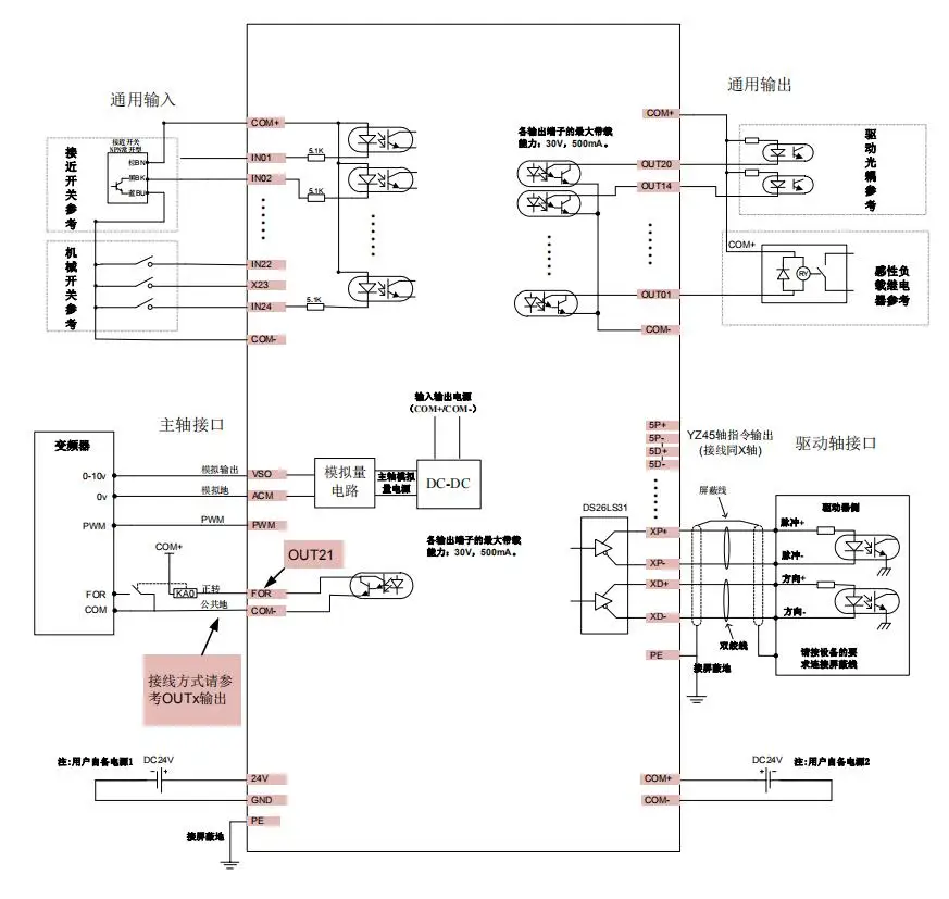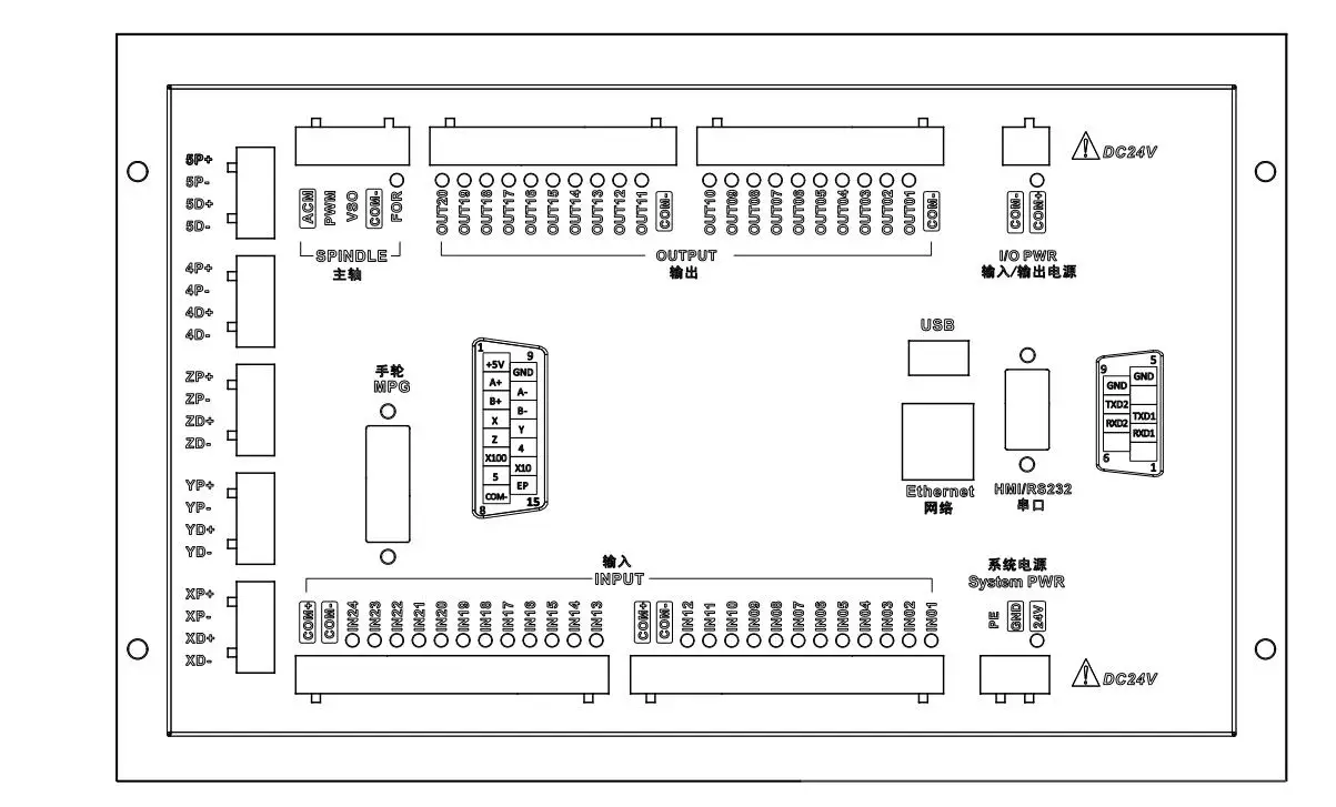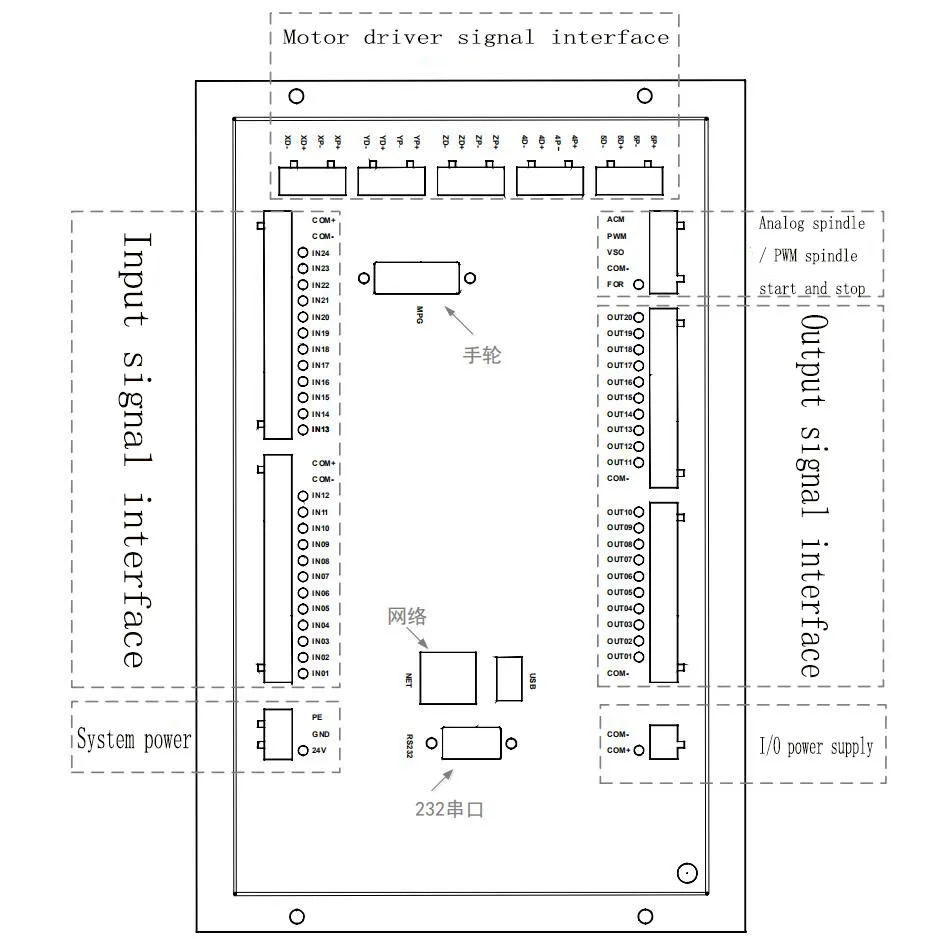 Направление импульса принимает дифференциальный выход, максимальная интерполяционная частота импульса составляет 1 МГц; Spindle режим управления шпинделем: многоступенчатая скорость (4 шага и 16 скоростей), аналоговый (0-10 В), сервошпиндель;