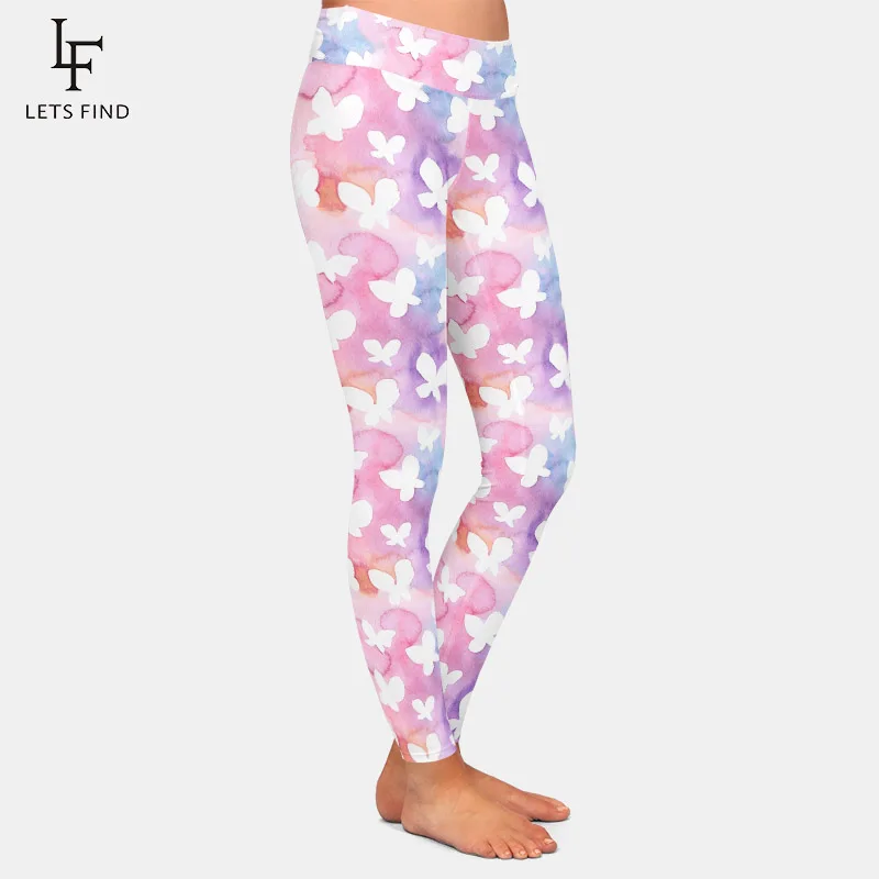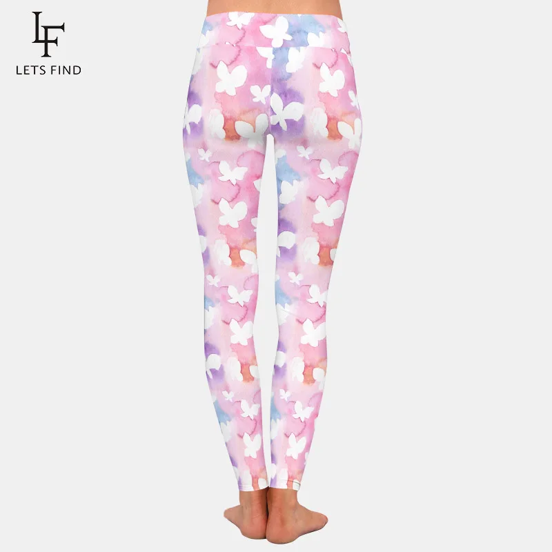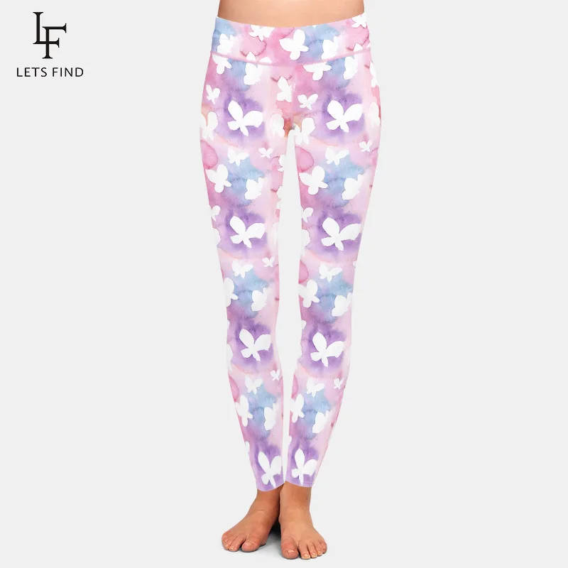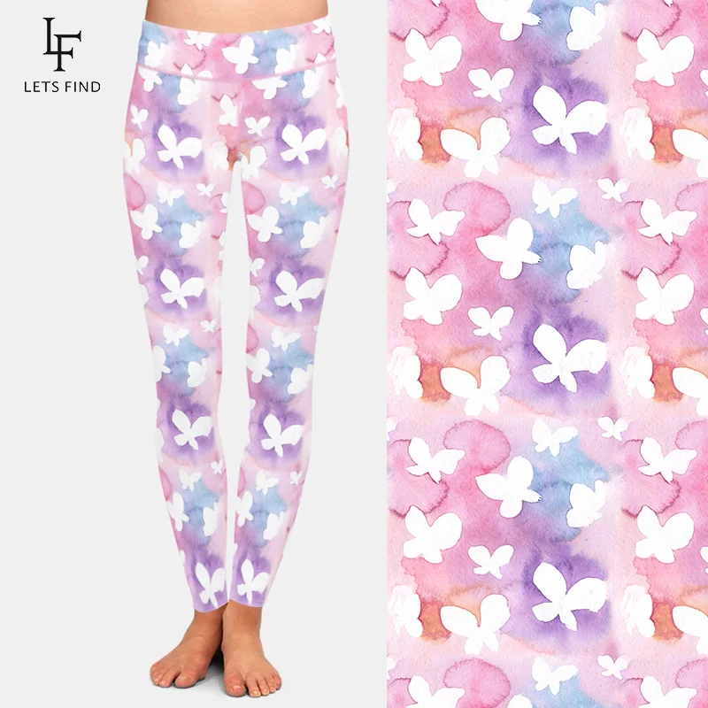 Леггинсы LETSFIND женские двусторонние с бабочками, модные леггинсы из мягкого молочного шелка с эффектом потертости, с завышенной талией, 220 гм2