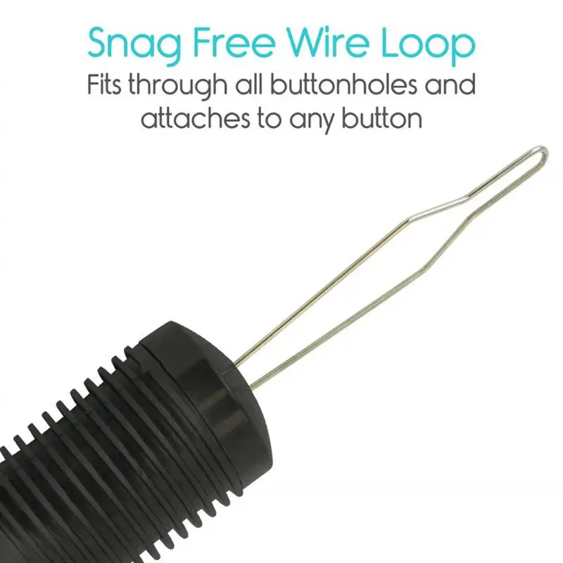 Это позволяет легко тянуть пуговицы через платья, рубашки, воротники и многое другое.