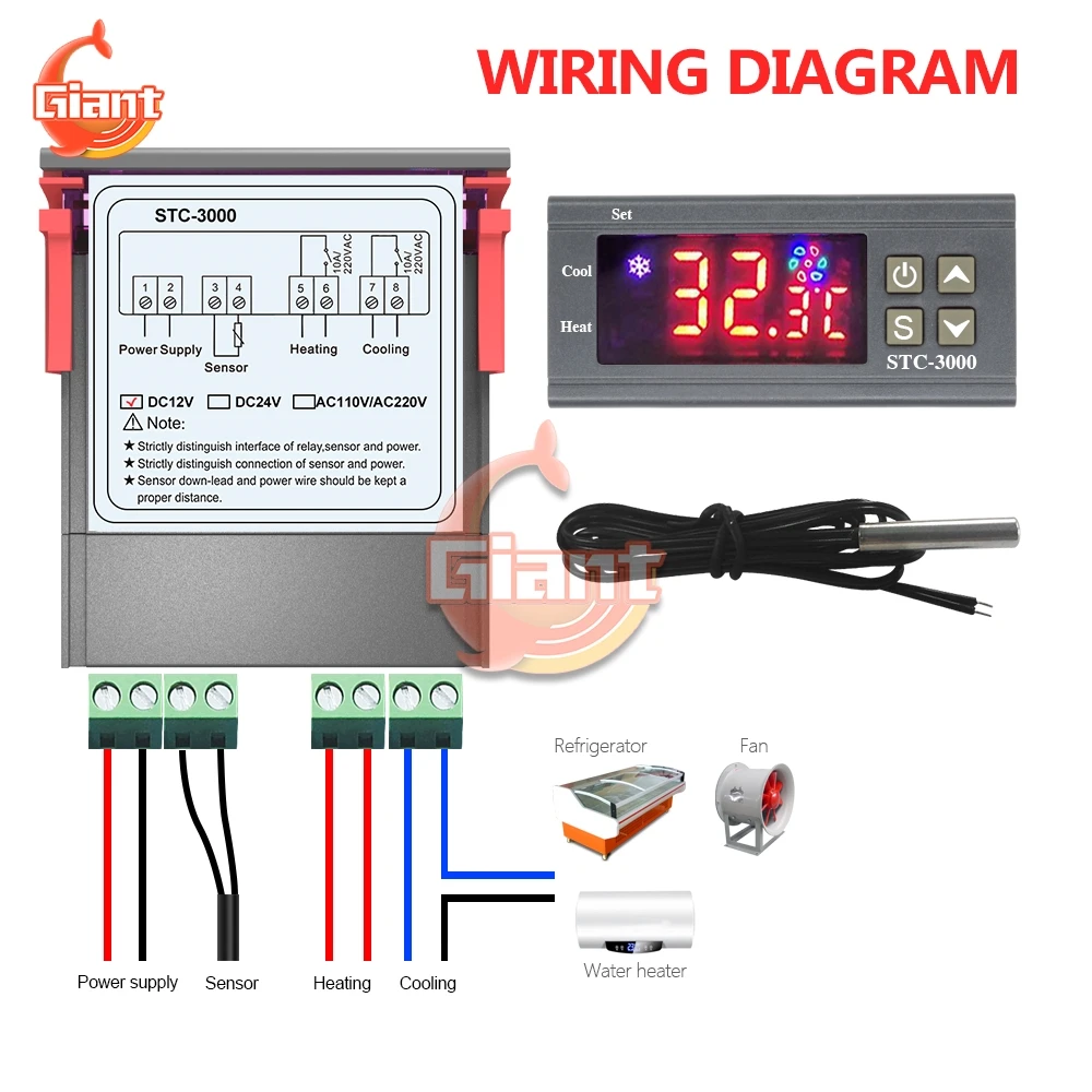 STC-3000 термостат 12 В постоянного тока Цифровой температурный контроллер терморегулятор нагревание охлаждение Температурный датчик реле для инкубатора бойлер домашний держатель