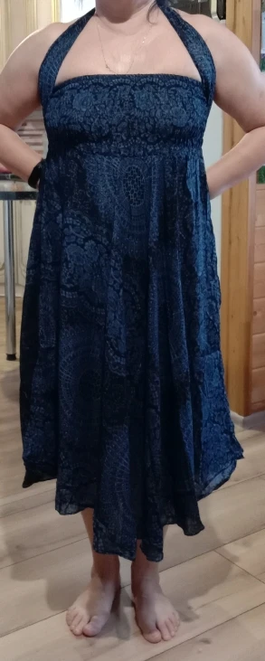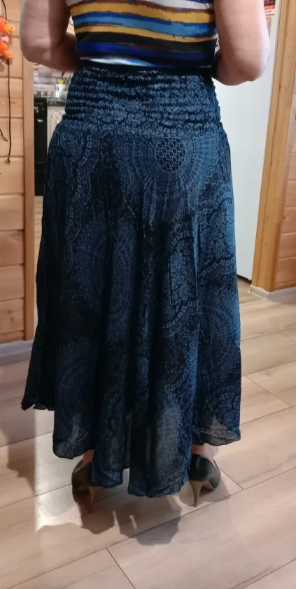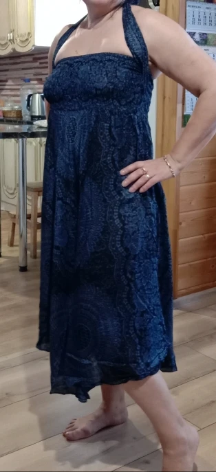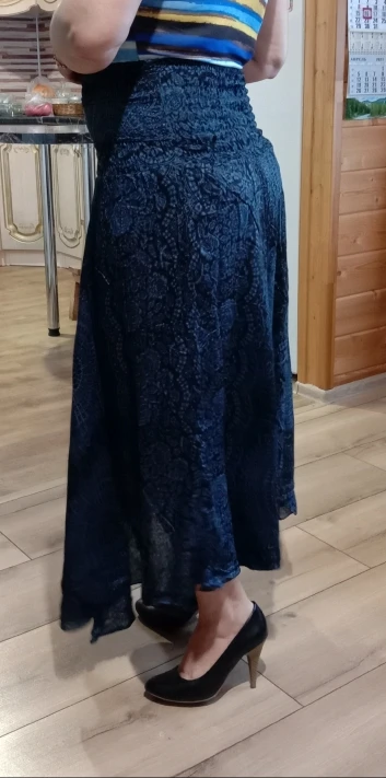 Посылка пришла быстро. На лето отличный вариант, что за материал не знаю, но очень лёгкий и к телу приятный. На мои параметры , не не худышка, (о.г 95 см., о.т 85 см.) сел хорошо, правда рост у меня 158 см., длинновато, под каблук нормально. К покупке рекомендую!