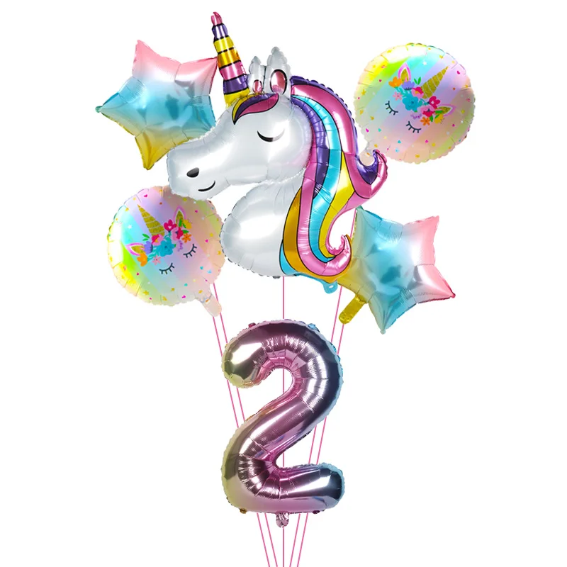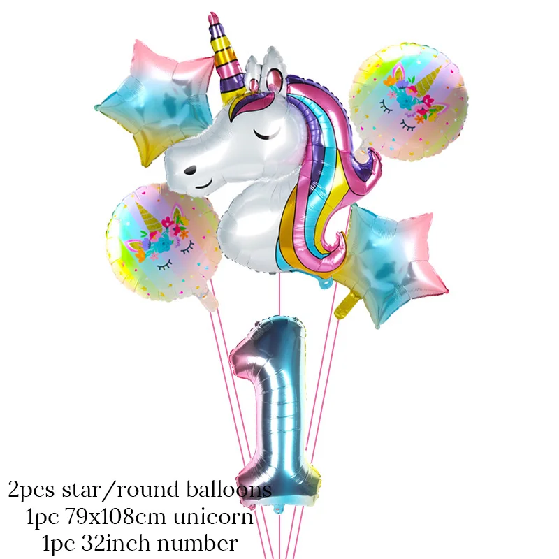 Воздушный шар в виде единорога с радужным градиентом, 32 дюйма, номер 1, 2, 3, 4, 5, 6, 7, 8, 9, для мальчиков и девочек, украшения на день рождения