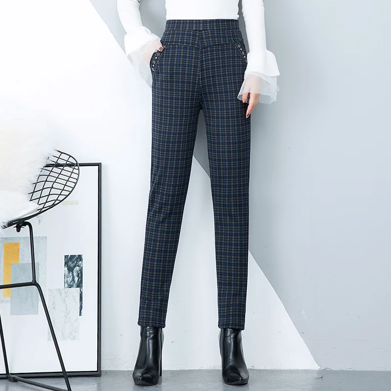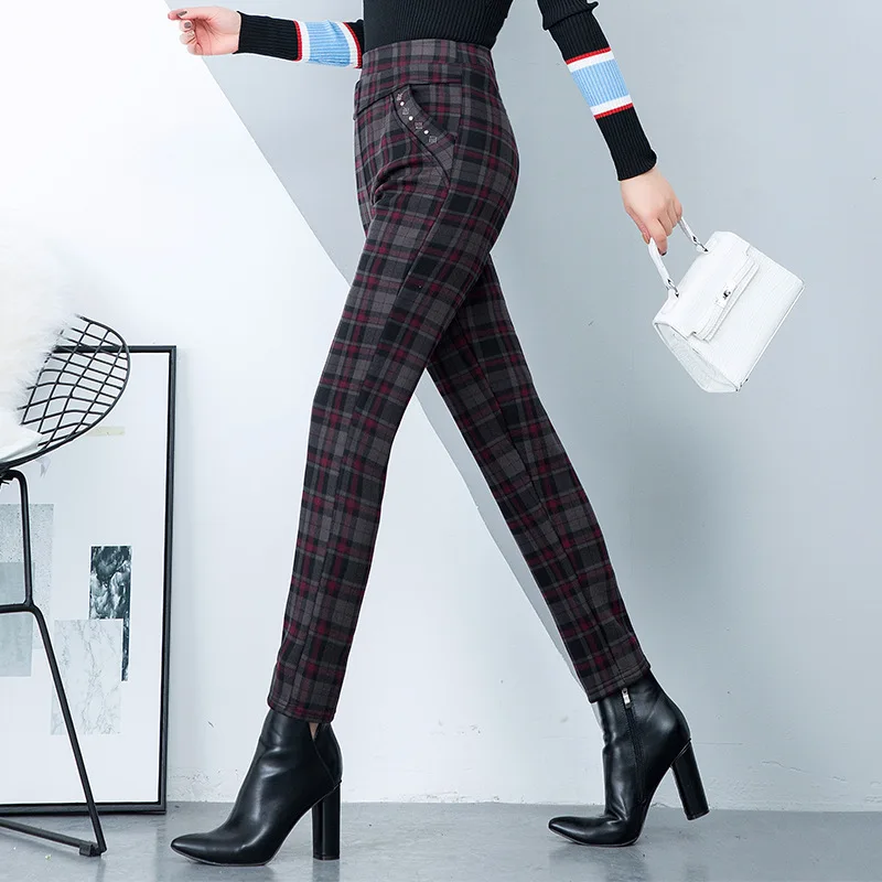 Большой Размеры 2020 осень-зима женщин среднего возраста сетки теплые штаны с плюшевой подкладкой, с эластичной резинкой на талии, повседневные Прямые брюки для девочек