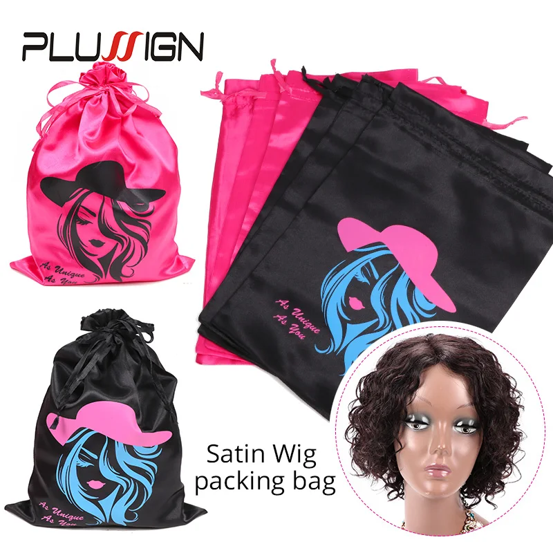 Plussign Новая Черная атласная сумка для пучков волос, сумки для париков 25*35 см, сумка для путешествий с кисточками на шнурке, 1-3 шт.лот