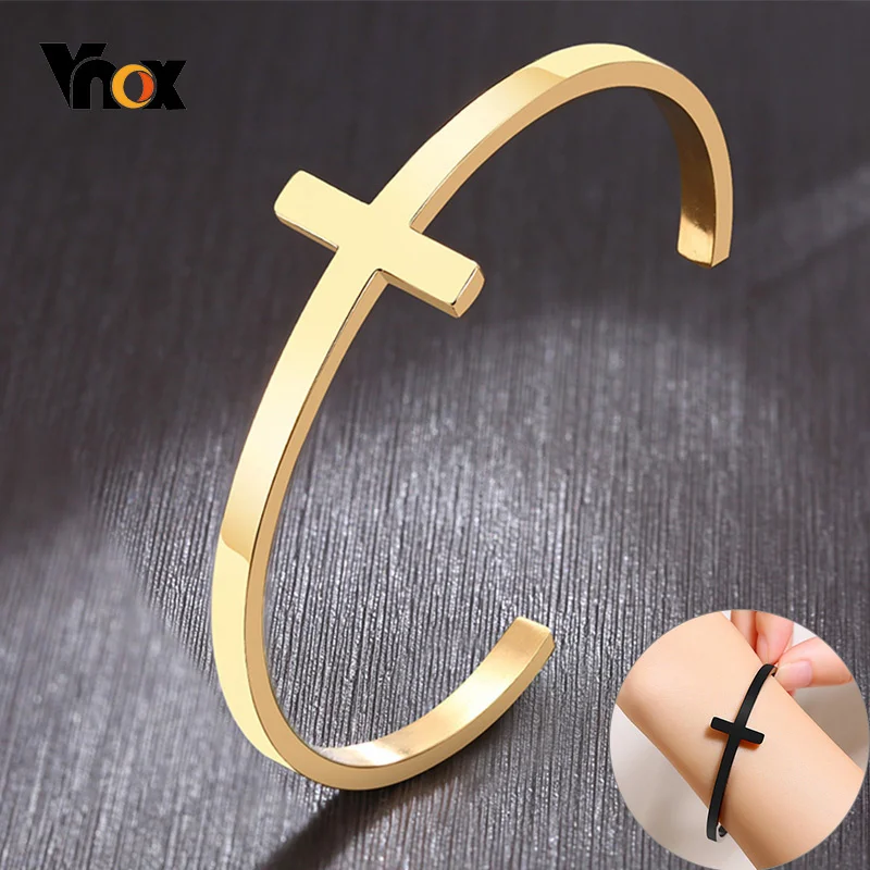 Стильный крестообразный браслет Vnox для женщин и мужчин, глянцевый Браслет-манжета из нержавеющей стали, унисекс религиозные искусства