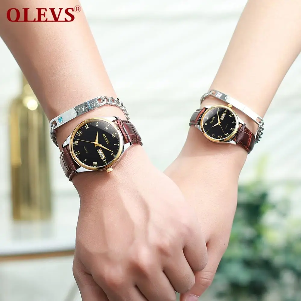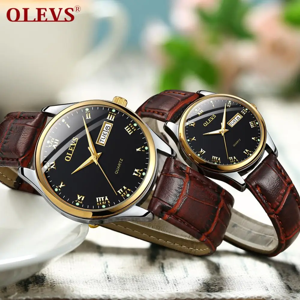 Часы наручные для влюбленных с кожаным ремешком, Кварцевые водонепроницаемые брендовые Роскошные для мужчин и женщин