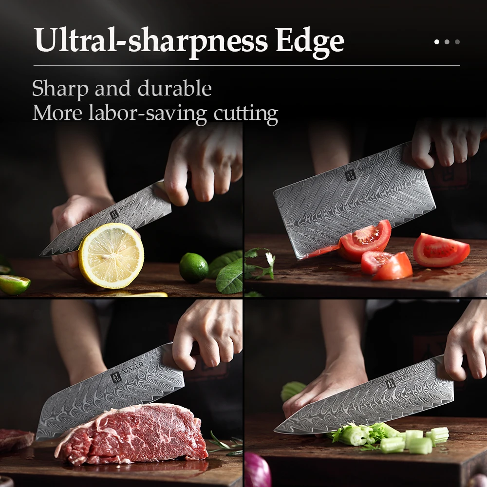 Кухонный нож XINZUO, Многофункциональный кухонный прибор из дамасск...