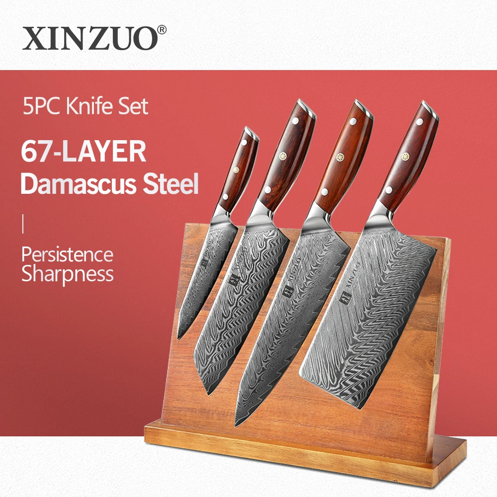 Набор кухонных ножей XINZUO, 5 шт., с держателем ножей, 67 слоев, д...
