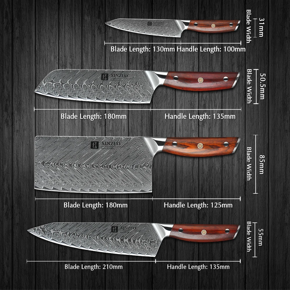 Набор кухонных ножей XINZUO из дамасской стали для шеф-повара санто...