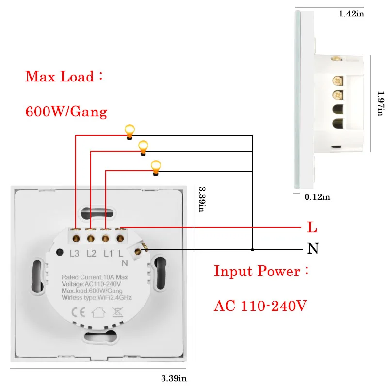 Смарт-выключатель настенный сенсорный с поддержкой Wi-Fi, 123 кнопок, 110 240 В переменного тока