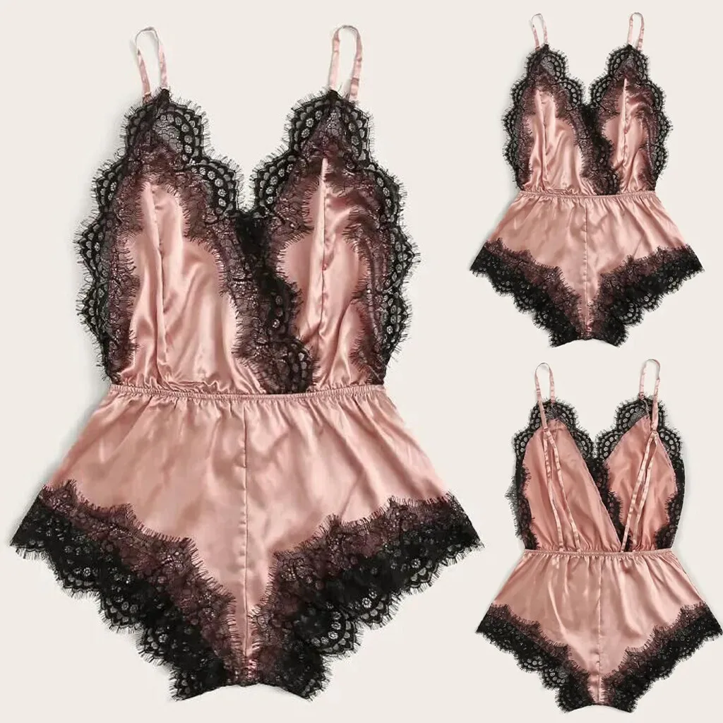 Пикантная Пижама, Женское боди, Женское ночное белье, атласная шелковая цельная Пижама, женское нижнее белье, нижнее белье, женская пижама #3