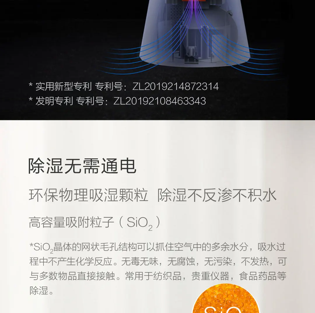 Основная особенность1. Перерабатываемый, экологически чистый, влагопоглощающий и устойчивый к плесени2. Беспроводная работа, впитывающая влагу, ее можно положить куда угодно, как обувной шкаф, книжный шкаф и шкаф.3. Видимая скорость поглощения4. Перерабатывается более 300 раз (около 3 лет каждый сменная панель) после 2 часов высыхания5. Когда влагопоглощающие частицы стали зелеными, значит, они насыщены. После 2 часов высыхания он превратится в оранжевый и может использоваться снова.6. Низкая Компрессия 25 Вт