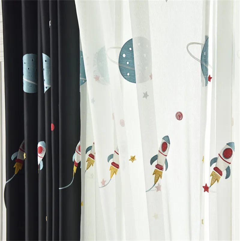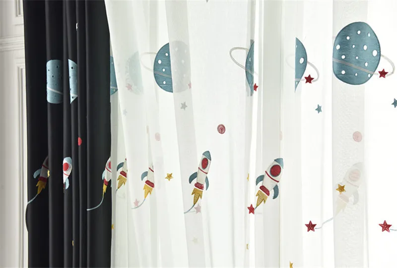 Занавески с вышивкой космической планеты для гостиной, Детские зате...