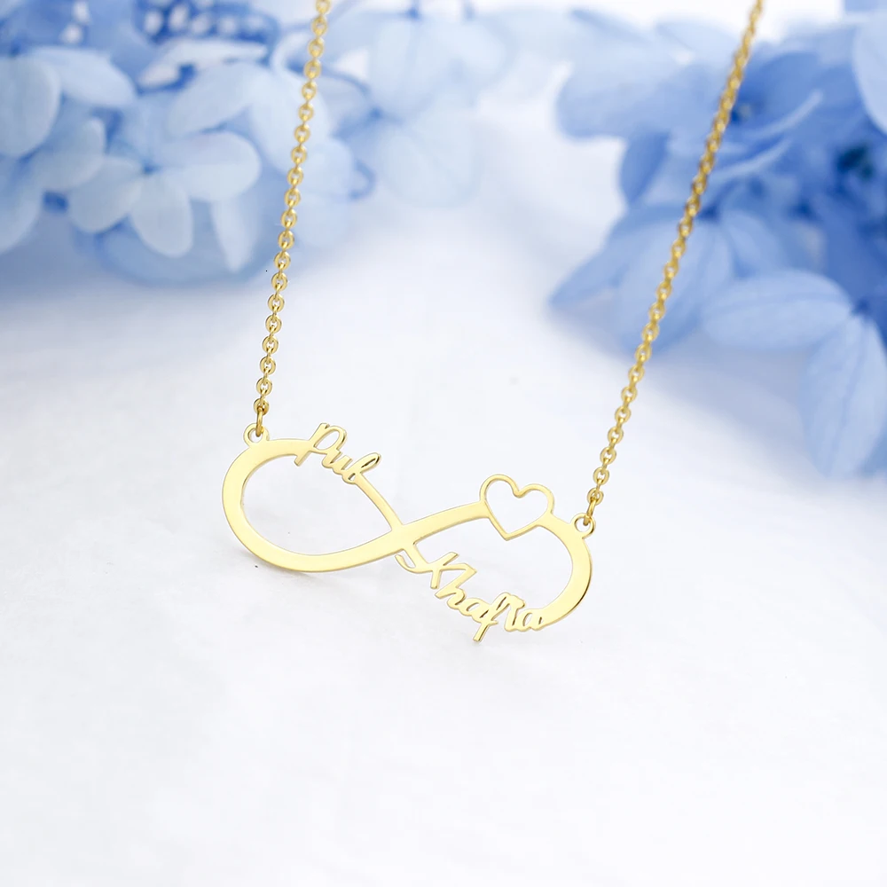 Ожерелье с именем на заказ из нержавеющей стали, розовое золото, серебро, кулон бесконечности, Ожерелье Дружбы, ювелирные изделия, подарок лучшему другу