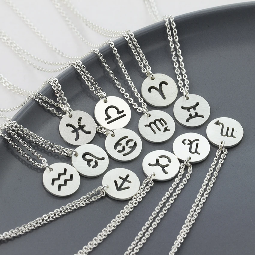 Женские и мужские аксессуары из нержавеющей стали, круглый знак зод...