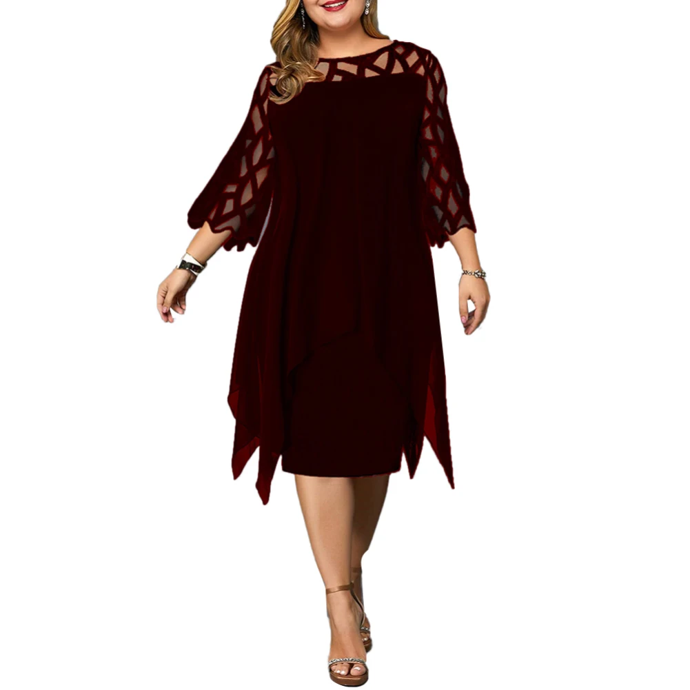 Женское Прозрачное платье до колена с рукавом 3/4 И АСИММЕТРИЧНЫМ ПОДОЛОМ Характеристики:Он оформлен неровным подолом и прозрачным рукавом, что уникально и стильно.Вы можете сочетать каблуки, сумку, чтобы получить другой красивый вид.Подходит вечерние, собраний, путешествий, уличной одежды, коктейлей и т. д. Тип: ПлатьеТип размера: ОбычныйПол: женщиныМатериал: нейлон, полиэстер, спандексСтиль: МодныйТип горловины: круглый вырезДлина рукава: 3/4 рукавДлина платья: Платье До КоленаУход За Одеждой: ручная стиркаОсобенности: асимметричный подол, обманка из двух частей, прозрачный рукавИнформация о размере:[Наш Размер L] Обхват груди: 106 см/41,7 дюйма, Плечи: 37 см/14,6 дюйма, рукав: 48 см/18,9 дюйма, длина: 98 см/38,6 дюйма (прибл.)[Наш Размер XL] Обхват груди: 110 см/43,3 дюйма, Плечи: 38 см/15 дюймов, рукав: 49 см/19,3 дюйма, длина: 99 см/39 дюймов (прибл.)[Наш Размер 2XL] Обхват груди: 114 см/44,9 дюйма, Плечи: 39 см/15,4 дюйма, рукав: 50 см/19,7 дюйма, длина: 100 см/39,4 дюйма (прибл.)[Наш Размер 3XL] Обхват груди: 118 см/46,5 дюйма, Плечи: 40 см/15,7 дюйма, рукав: 51 см/20,1 дюйма, длина: 101 см/39,8 дюйма (прибл.)[Наш Размер 4XL] Обхват груди: 122 см/48 дюймов, Плечи: 41 см/16,1 дюйма, рукав: 52 см/20,5 дюйма, длина: 102 см/40,2 дюйма (прибл.)[Наш Размер 5XL] Обхват груди: 126 см/49,6 дюйма, Плечи: 42 см/16,5 дюйма, рукав: 53 см/20,9 дюйма, длина: 103 см/40,6 дюйма (прибл.) Примечания:Пожалуйста, обратитесь к нашей таблице размеров и выберите правильный размер.Из-за разницы в освещении и настройках экрана цвет товара может сильно отличаться от изображений. Посылка входит:1 x Платье