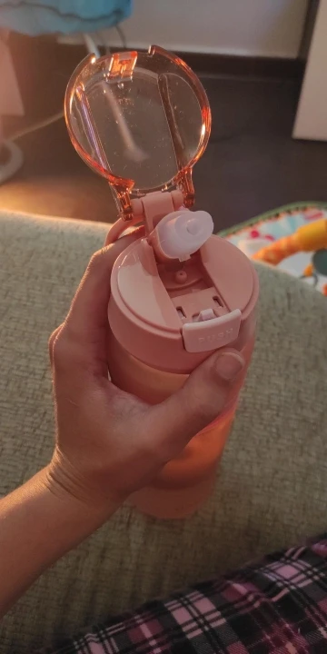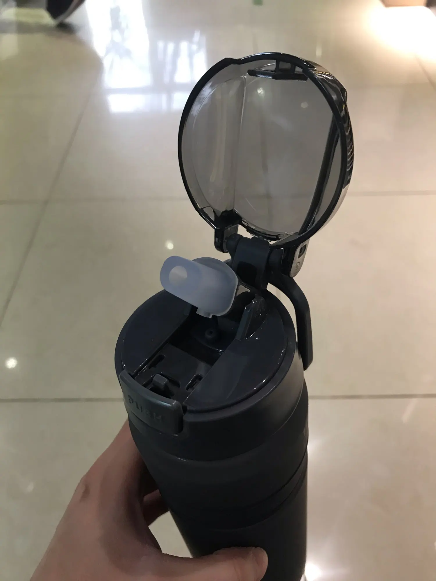 Бутылка просто великолепная! Брал для себя, побольше. Крышка отщёлкивается с приятным звуком, как раз на столько, чтобы спокойно пить не задевая другие части бутылки ни носом ни подбородком. Силиконовый носик, через который происходит всасывание жидкости всегда чистый. Кольцо, за которое можно цеплять на пояс или к сумке - гибкое. Кстати, запрокидывать бутылку не надо, пьётся как из трубочки. Бутылка герметичная, оставлял полную перевёрнутую на всю ночь, ни капли мимо)). Пластик не пахнет. Категорически рекомендую товар!!! Доставка в г.Калуга - 2-е недели.