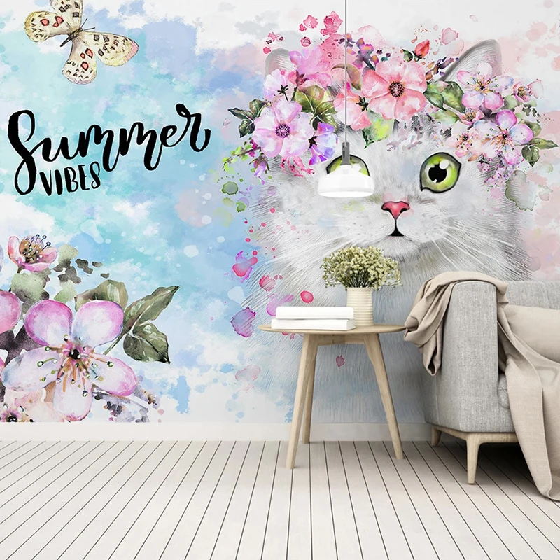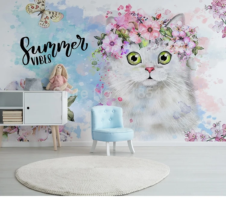 Настенные обои на заказ для детской комнаты, цветы, бабочки, воздуш...