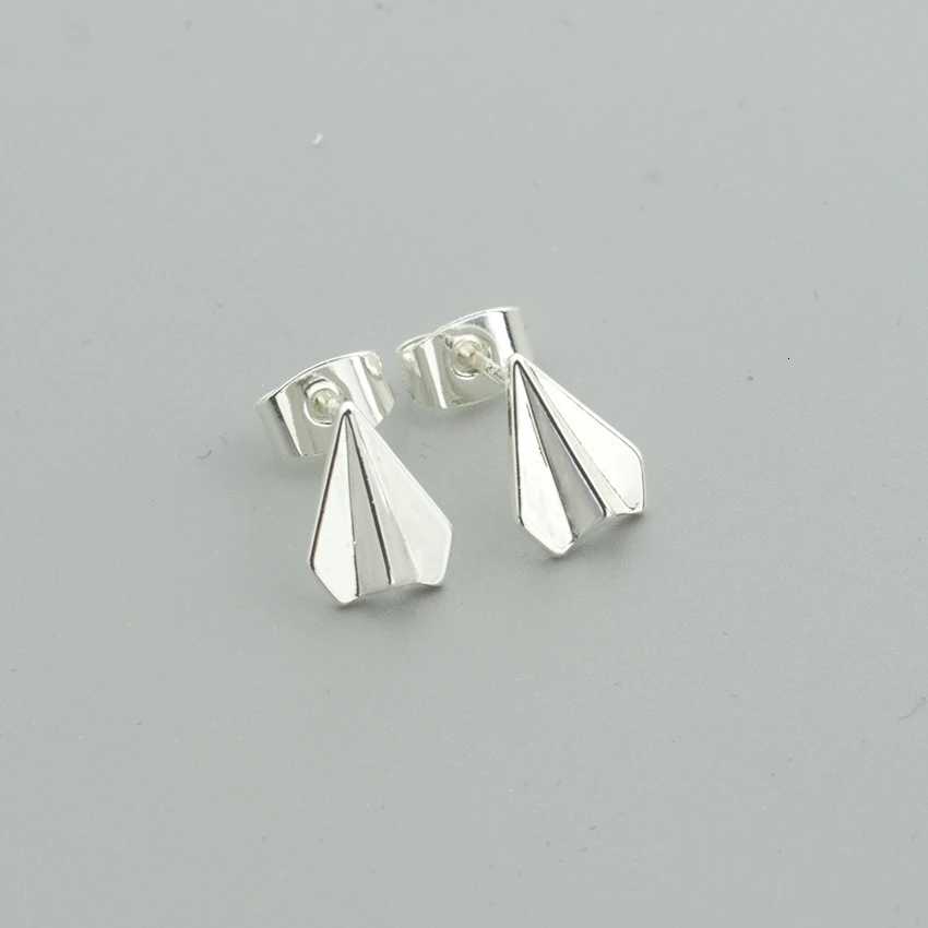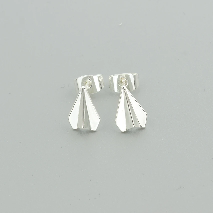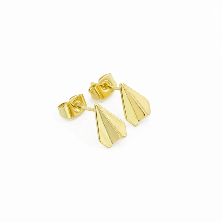 Женские серьги-гвоздики в виде самолета оригами, простые черные серьги из нержавеющей стали, 2020