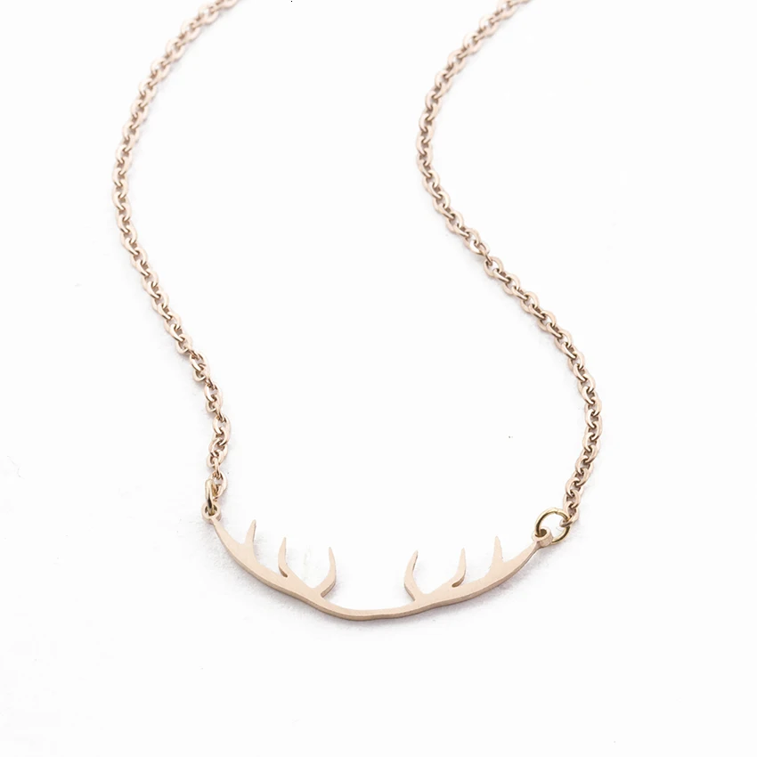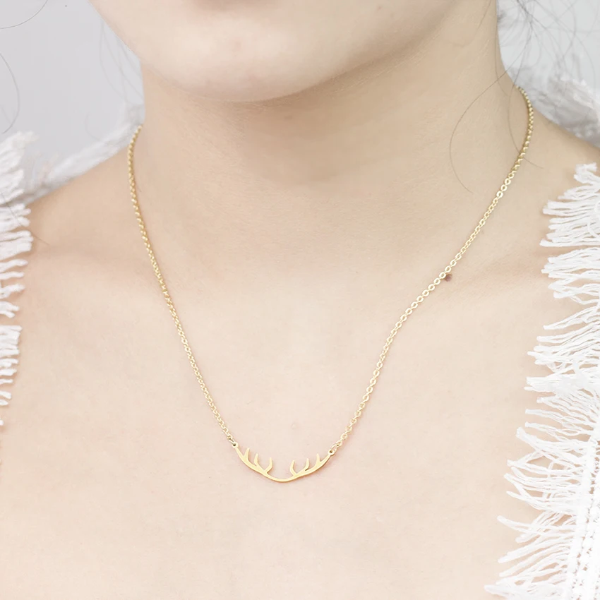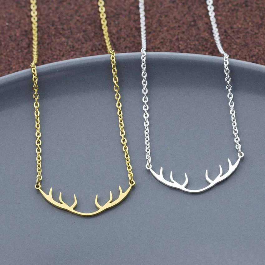 Ожерелье с рожками оленя, ожерелье из нержавеющей стали золотого цвета, Очаровательное ожерелье для лучших друзей, подарки, ювелирные изделия диких животных