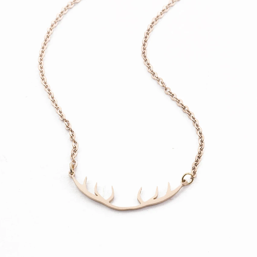 Золотистое Ожерелье с рогом оленя, изящное ожерелье из нержавеющей стали, Очаровательное ожерелье для лучших друзей, подарки, ювелирные изделия с дикими животными
