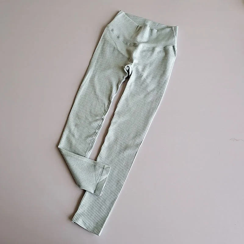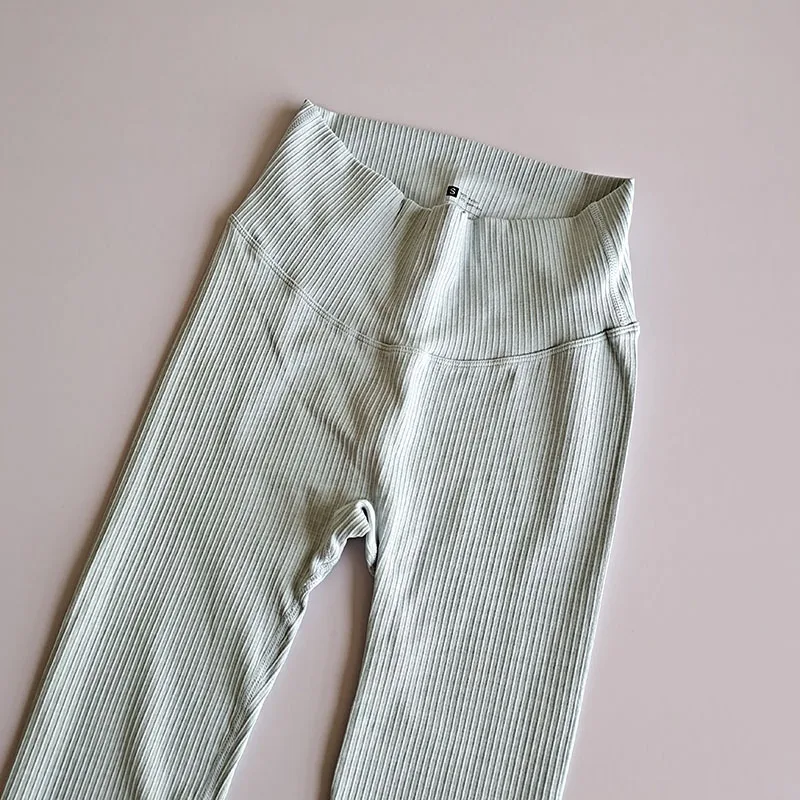 Женский спортивный костюм из 2 предметов, бесшовный спортивный костюм для бега, фитнеса, йоги, леггинсы и спортивный бюстгальтер в рубчик