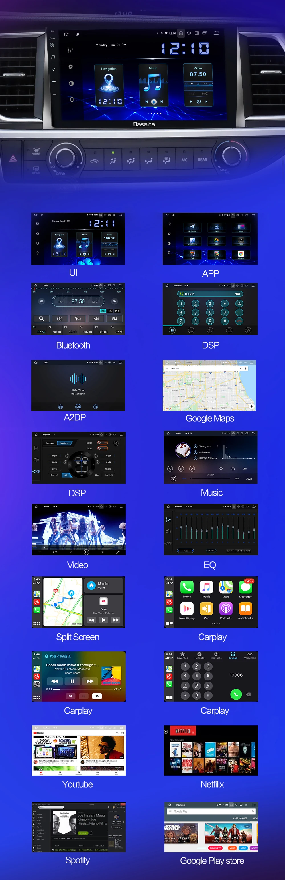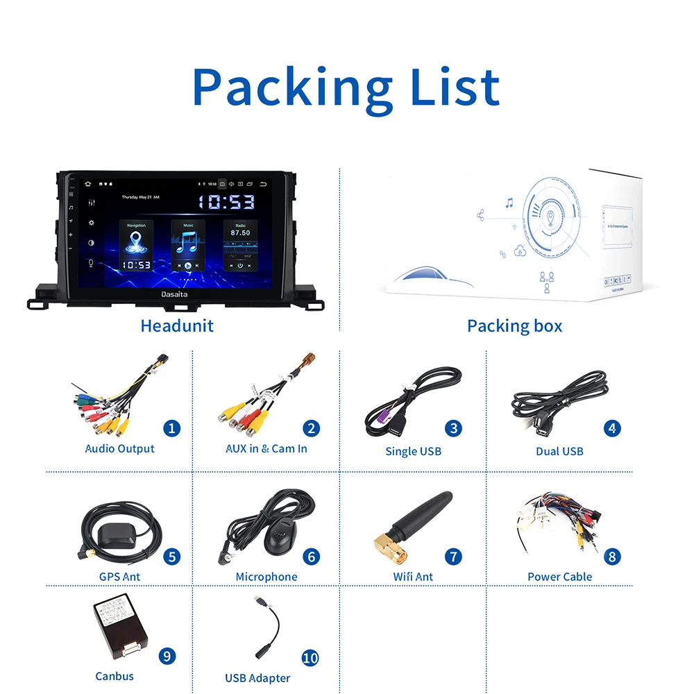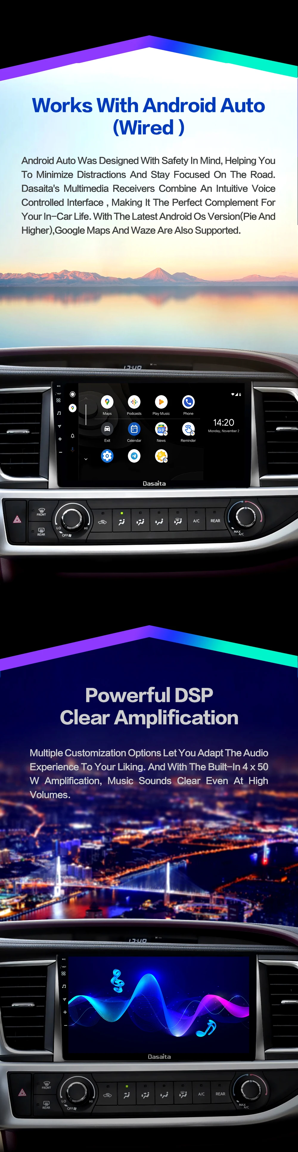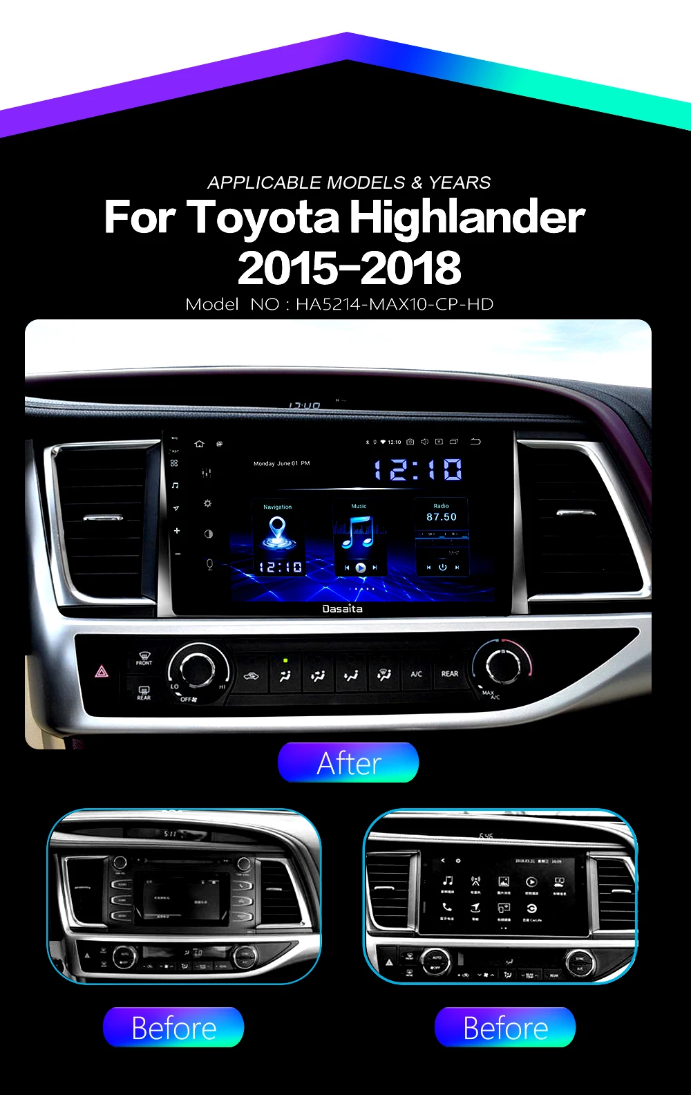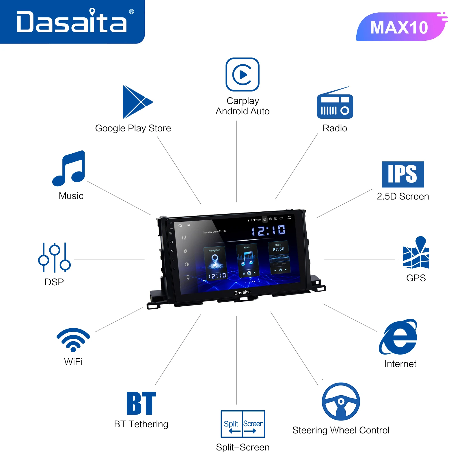 Dasaita Автомобильный мультимедийный 10,2 "HD сенсорный экран Android 10,0 для Toyota Highlander радио 2015 2016 2017 2018 GPS DSP BT5.0 MAX10