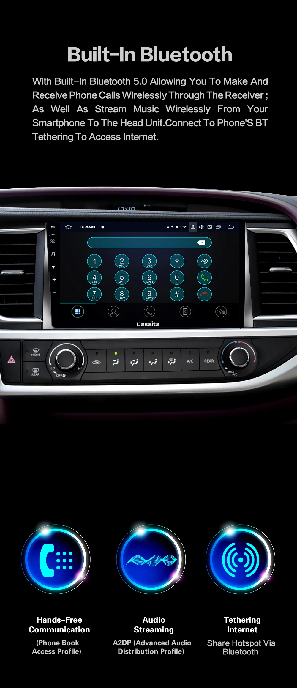 Сенсорный экран 1280*720Стерео видео для автомобиляСистема интегрирована в приборную панель радио/A2DP/Bluetooth/WIFI/эквалайзер/навигация/МузыкаВыход DSP/Sub-Mid