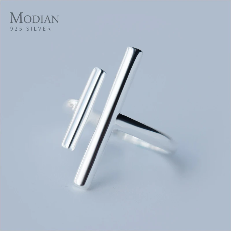 Женское Открытое кольцо Modian, регулируемое Ювелирное Украшение с геометрической линией, аутентичное Стерлинговое Серебро, 925