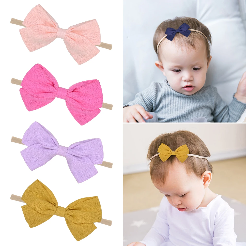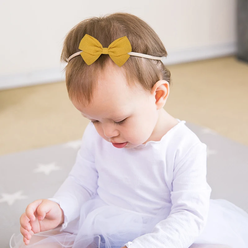 Милый детский ободок 3,5 дюйма для девочек, эластичная повязка на голову с бантиком, Детские эластичные Однотонные резинки для волос, аксессуары для волос