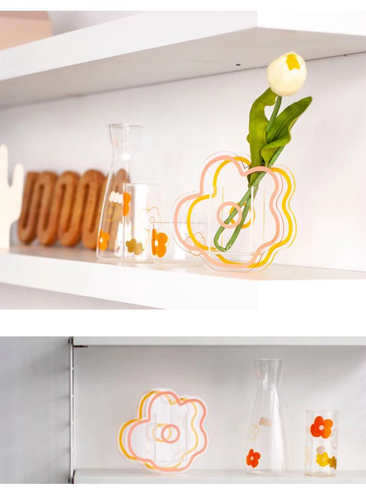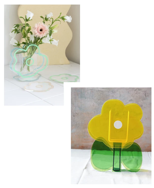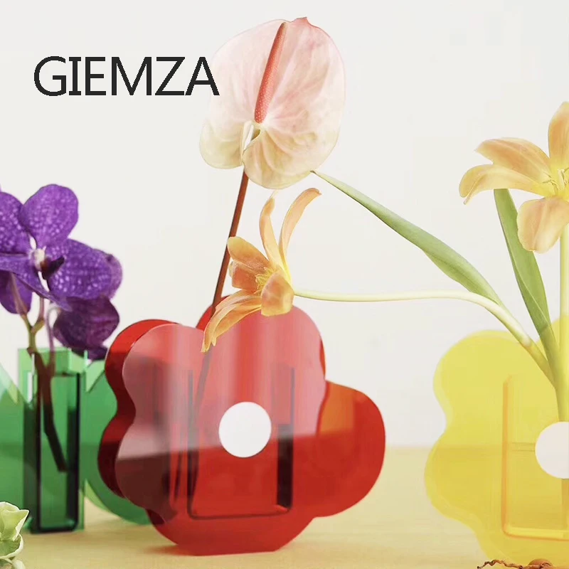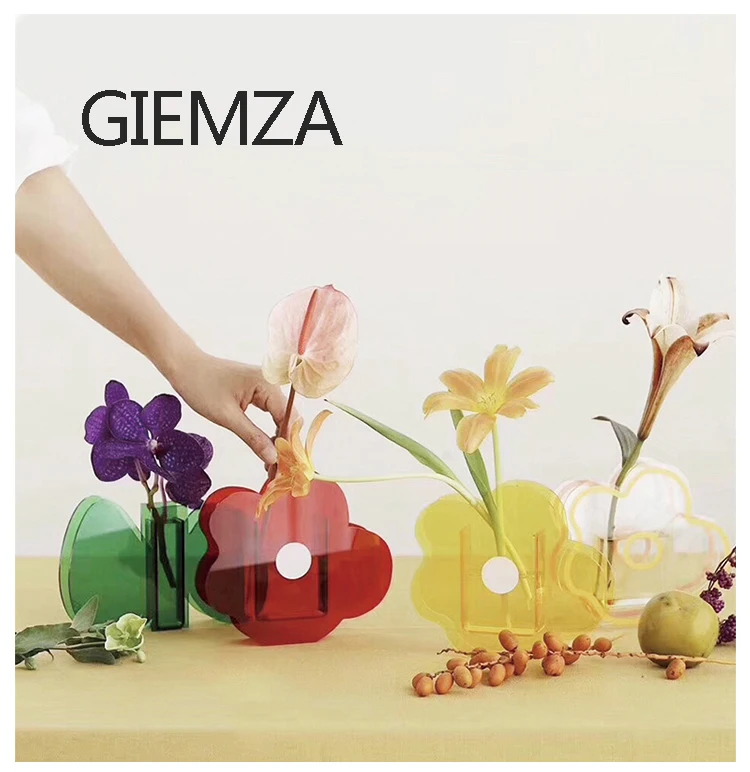 Прозрачная ваза GIEMZA с листьями, акриловые высушенные цветы, украшение для цветов, восхитительный принт, 1 шт., милый набор для девочек