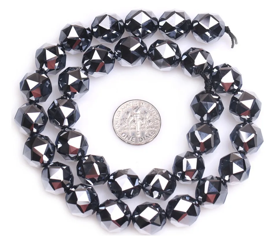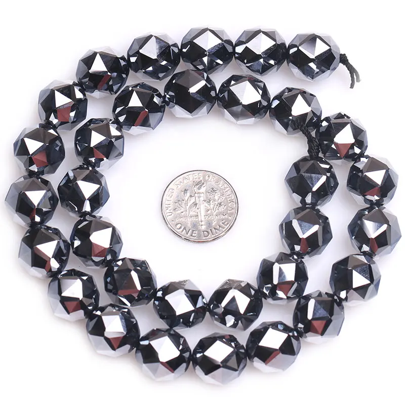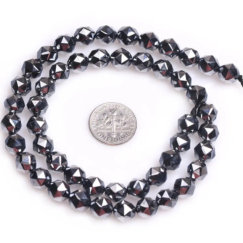 Граненые круглые бусины класса AAA, черные блестящие бусины Terahertz, аксессуары из натурального камня, бусины россыпью для изготовления ювелирных изделий, нитка 15 дюймов