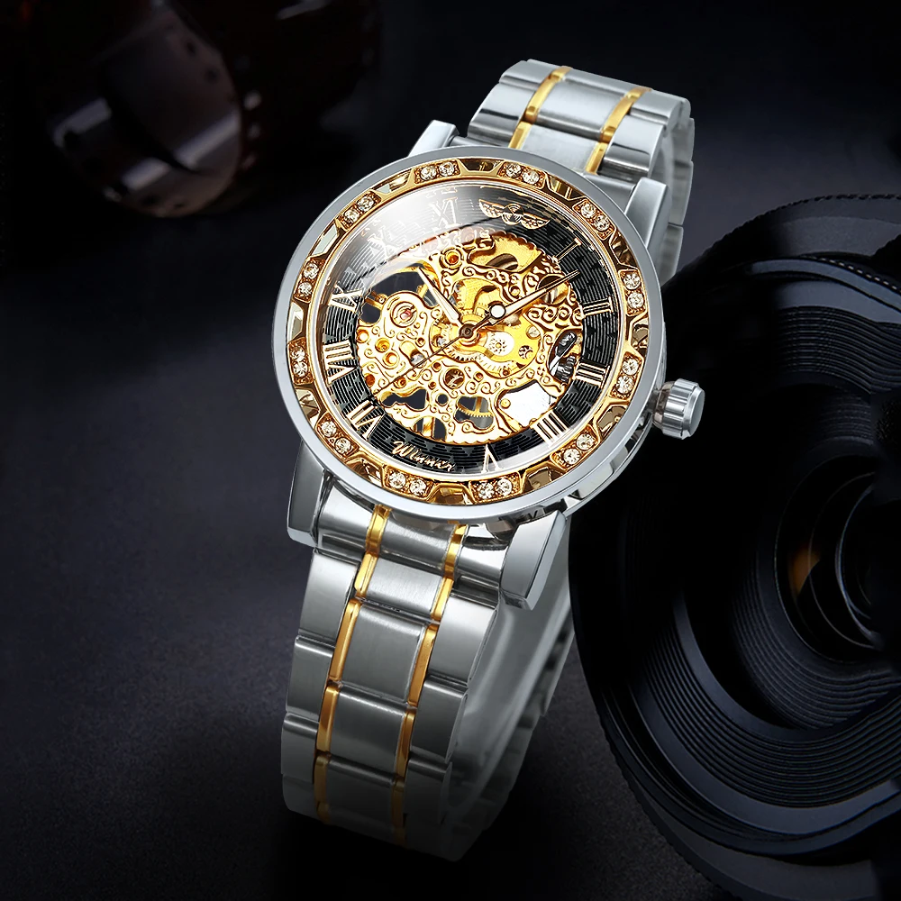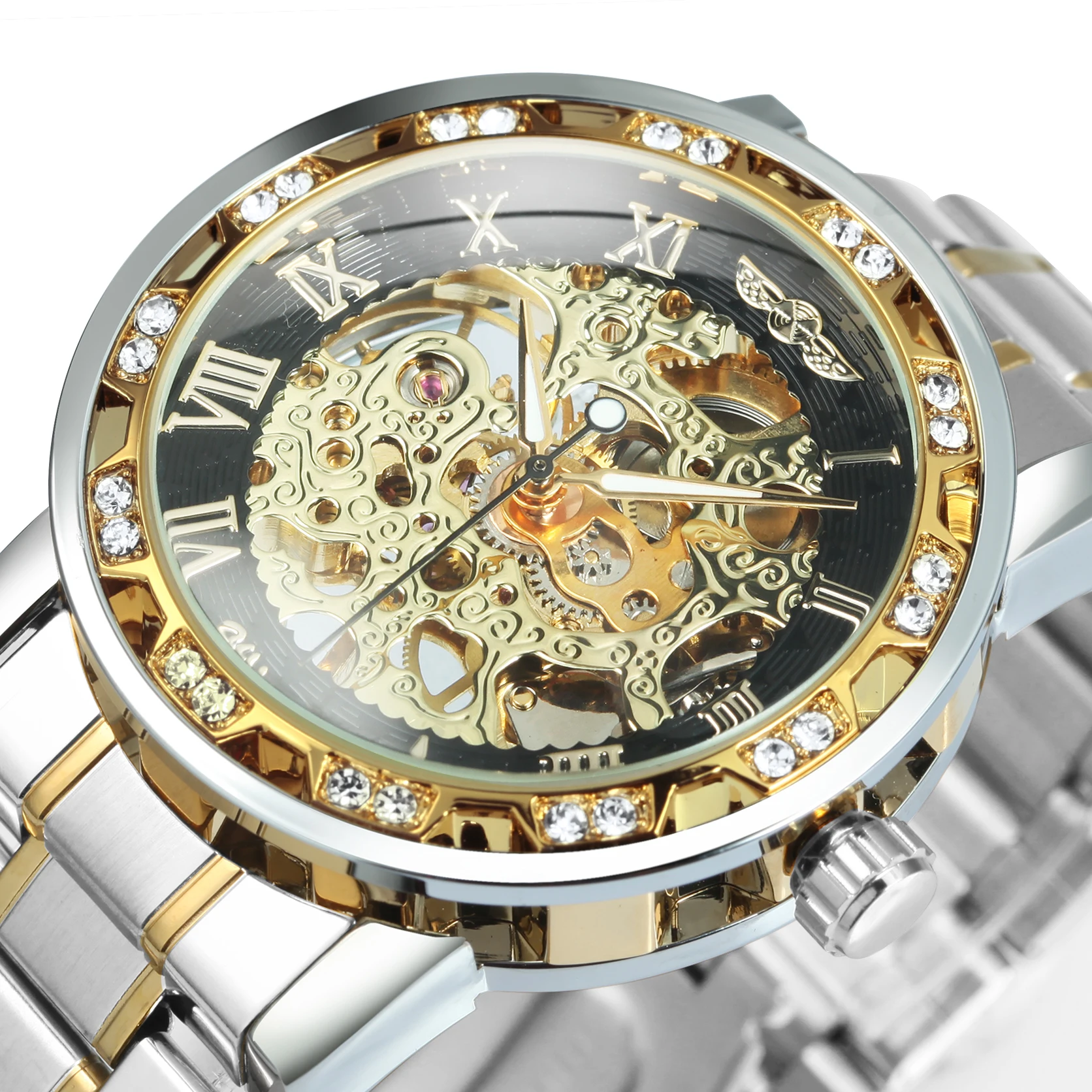 Часы наручные Winner Мужские механические, прозрачные брендовые роскошные часы-скелетоны с бриллиантами, унисекс