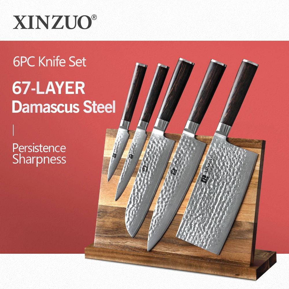 Набор поварских ножей XINZUO, 6 шт., наборы ножей из дамасской нержавеющей стали, магнитный держатель для ножей Горячая Распродажа, кухонный инструмент, ножи для мяса