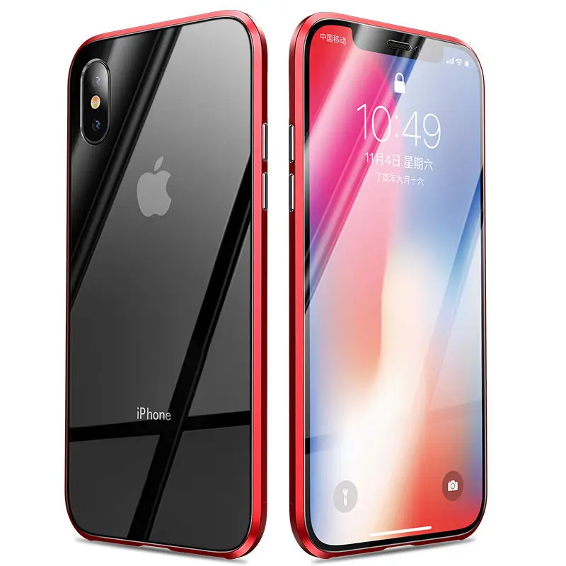 Двусторонний стеклянный металлический магнитный чехол для iPhone XS...