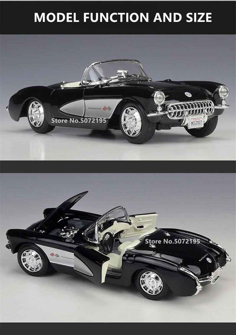Модель автомобиля Maisto 1:24 из сплава для Chevrolet Corvette 1957 Mustang Roadster, Коллекционные Подарочные игрушки