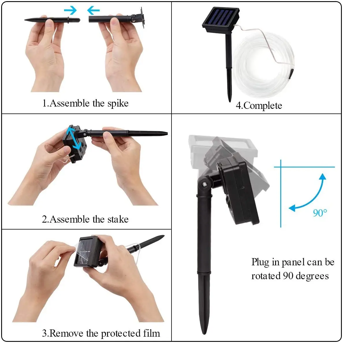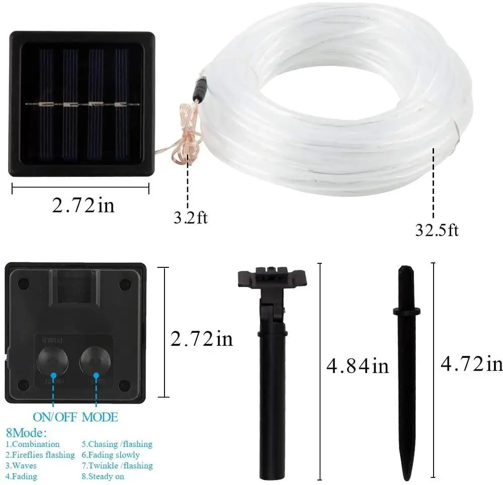 Особенности:На солнечной батарее-солнечная панель заряжает аккумулятор в солнечные и пасмурные дни. Огни автоматически включаются ночью с непрерывным освещением до 8 часов. Эти водонепроницасветодиодный светодиодные фонари изготовлены из прочного твердого пластика, экономичны, экологичны и многоразовые.8 режимов освещения-гирлянда на солнечной батарее обеспечивает 8 режимов освещения с функцией памяти. Великолепные Режимы освещения включают комбинацию, мигание светлячков, волны, выцветание, погоня/мигание, медленное выцветание, мерцание/мигание и постоянное включение, что удовлетворит ваши потребности!Водонепроницаемость IP65-разработан, чтобы выдерживать все виды погоды, включая сильный дождь и снег, уличные гирлянды на солнечных батареях могут использоваться на открытом воздухе, не беспокоясь о дождливых днях.Складные и гибкие-высококачественные гибкие трубы из ПВХ позволяют легко формовать любую форму по вашему желанию. Его можно скручивать на дереве, палатке, зонте, перилах и в другом месте. Просто разжигайте свое воображение!Спецификация продуктаСветодиодный одов: 50/100/200 светодиодовДлина световой струны: 10 м/35,7 футовДлина провода до светодиодный да: 2 м/6,5 футаСолнечная панель: 2 в, маВстроенный NI-MA аккумулятор: Размер AA, 600 мА, 1 шт.Время зарядки: 6-8 часовВремя работы: 8-10 часовРабочая температура: -4'F-140'F