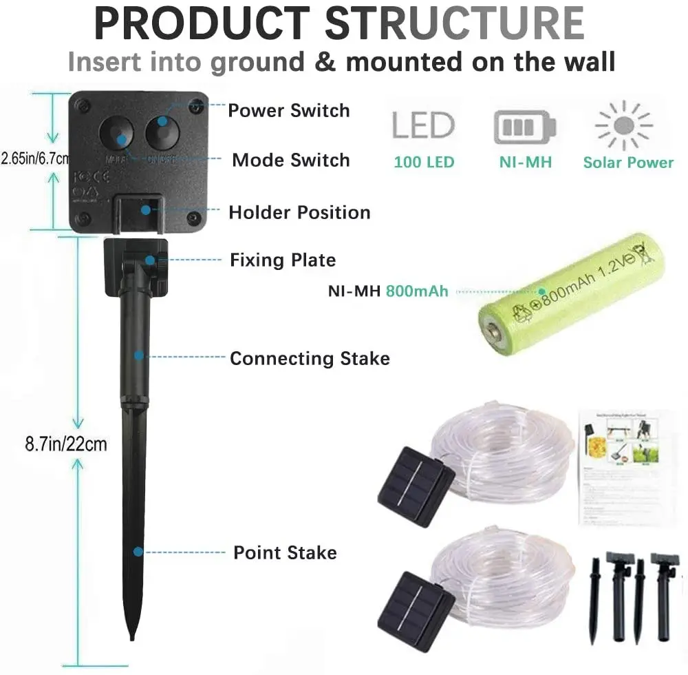 2 шт. в упаковке, уличный светильник на солнечной батарее, 50/100 светодиодов, уличная Водонепроницаемая трубка с медной проволокой, сказосветильник льник для сада
