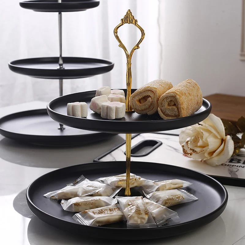 Керамическая двухслойная тарелка для сушеных фруктов, черного цвета, в скандинавском стиле, домашняя трехслойная стойка для послеобеденного торта, закуска к чаю