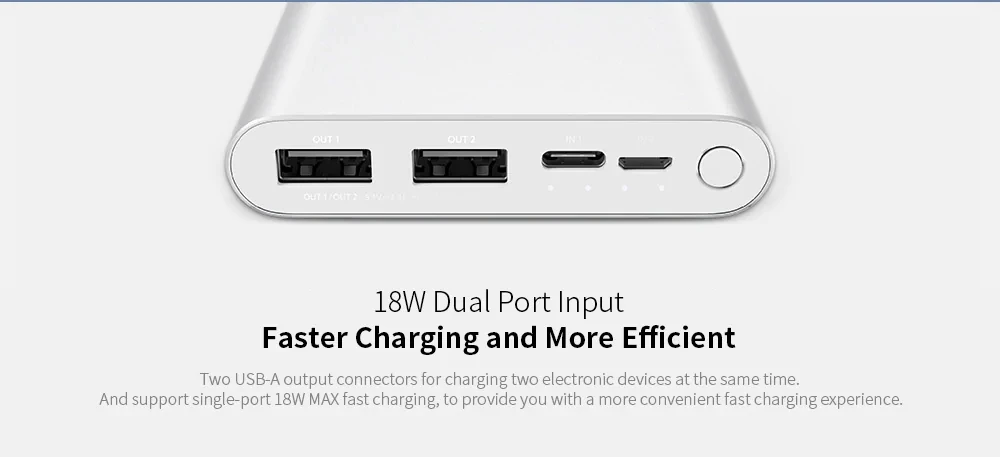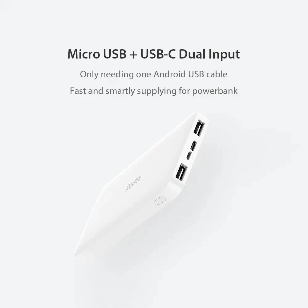 Внешний аккумулятор Xiaomi Redmi с 2 USB-портами и поддержкой быстрой зарядки, 10000 мАч