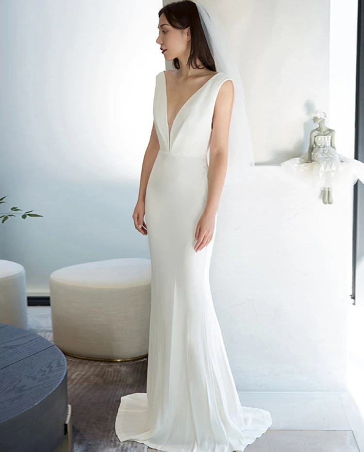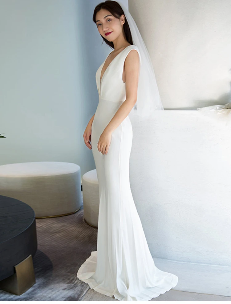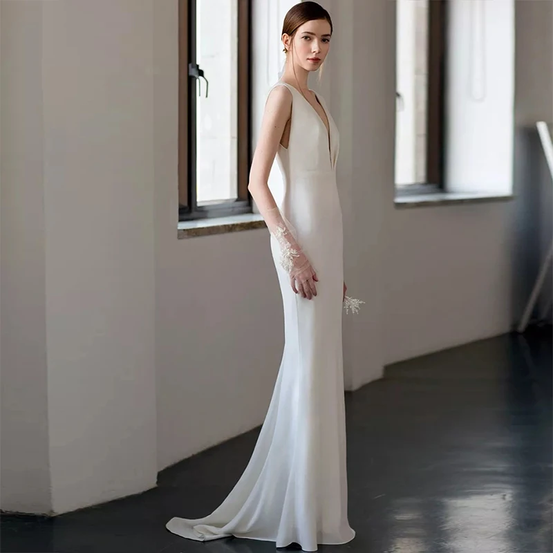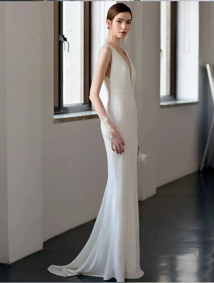 Вечернее платье во французском стиле, соблазнительные официальные платья с глубоким V-образным вырезом и открытой спиной, белое платье для выпускного вечера, платье-русалка без рукавов для свадебной вечеринки