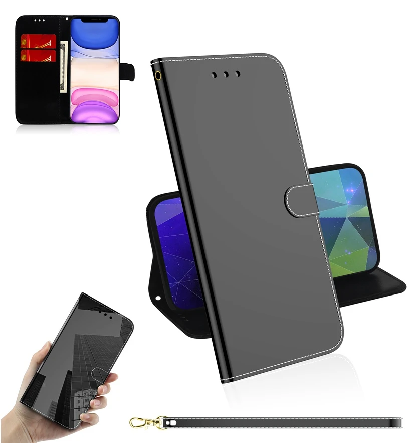 Зеркальный Чехол-книжка для Huawei Honor 10, 20, 20i, P30, P40 Lite, Pro, Nova 6SE, 7i, P Smart Plus, Y5, Y6 2019, кожаный