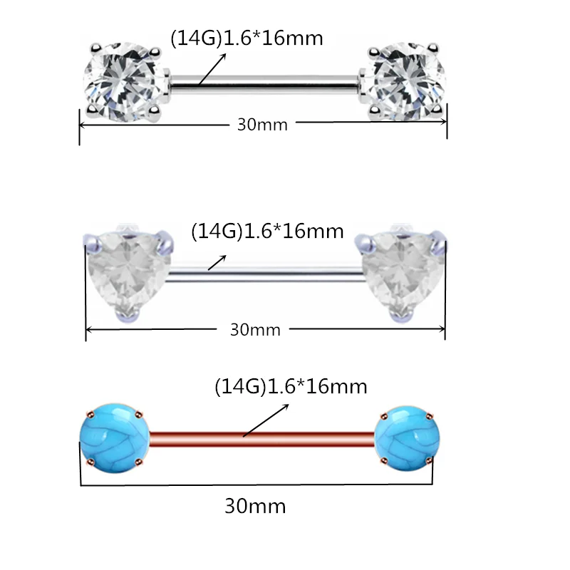 Штанга для пирсинга сосков из хирургической стали, 14 г, 2 шт.