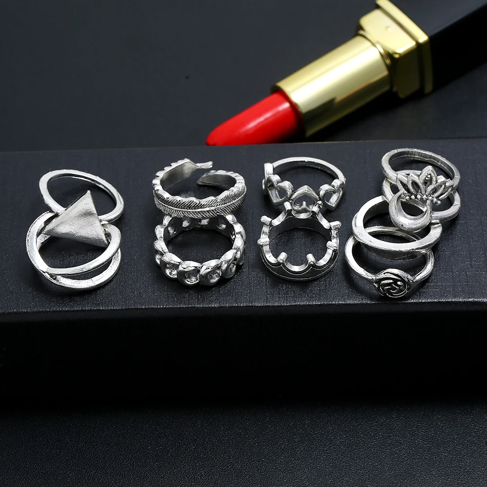 Богемный винтажный набор колец серебряного цвета, набор геометрических суставов, кольцо для женщин с кристаллом, индивидуальный дизайн, ювелирные изделия для вечерние, подарок