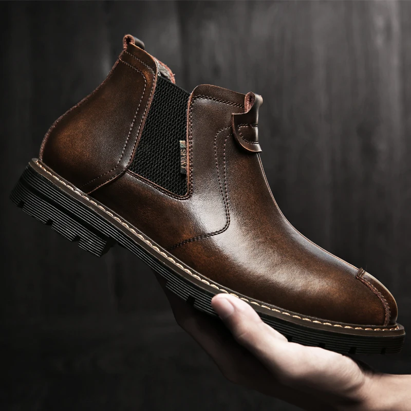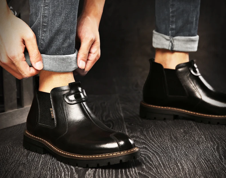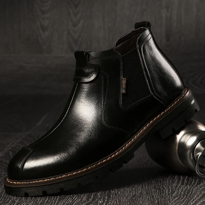 Ботинки мужские из натуральной кожи, повседневная обувь с высоким берцем, кожаные удобные зимние ботинки с внутренней отделкой