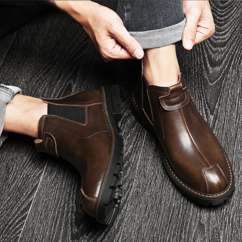 Ботинки Челси мужские без шнуровки, Повседневная Деловая обувь на п...