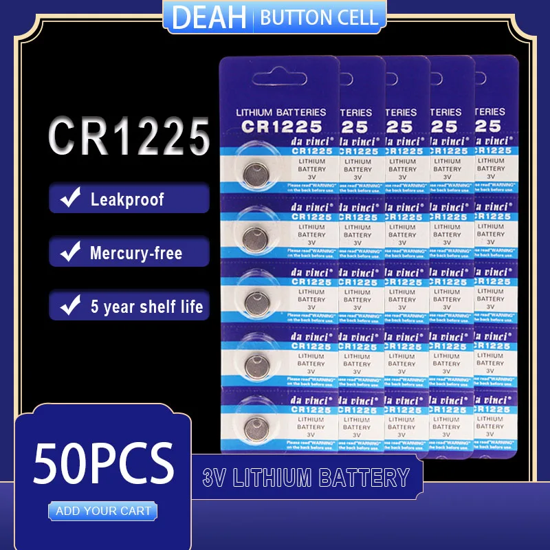 Литиевая батарея CR1225, 50 шт.лот, 3 в, CR 1225, LM1225, BR1225, KCR1225 для часов, компьютера, калькулятора, элементы управления игрушками