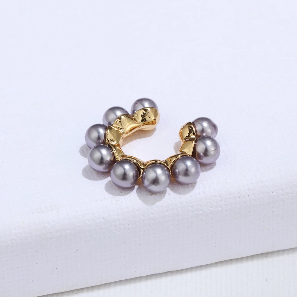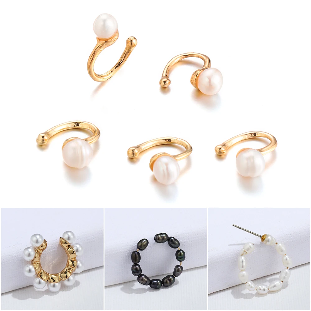 Каффы с фианитами, широкий многослойный натуральный жемчуг, без отверстия, каффы с пентаграммой, стразы, клипсы для пирсинга, ювелирные изделия